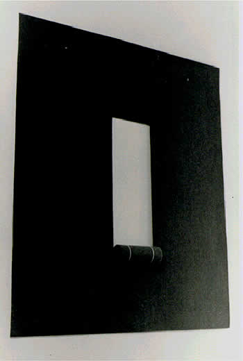Se os olhos continuam seu passeio pelo carpete de Alma, eles vão se deparar com um corte no centro do trabalho, algo como uma janela que permite ao olhar ver uma fatia da parede. A idéia do quadro como janela para o mundo é fundamental na história da pintura ocidental. O quadro seria uma janela através do qual o artista transformaria o espectador em voyeur do mundo. Porém, a janela no carpete mostra exatamente o que o quadro normalmente esconde, mostra a parede. Se o quadro usualmente é uma utopia, o não lugar, uma superfície através da qual se pode viajar, esse quadro de carpete, ao contrário, agarra o espectador pelo colarinho e o obriga a permanecer “aqui”, a se locomover do chão para a parede, da parede para o chão.