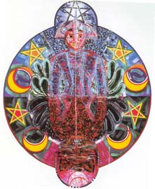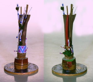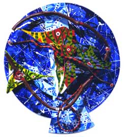 Assim, sua obra traça seu próprio caminho, evidenciando signos e símbolos de caráter transcedente, mas cuja sgnificancia nos remete aos conteúdos de sedimentos das expresoes populares do continente, especialmente das etnias que definem o nosso povo, numa forma singularmente interessante de encontro entre o particular e o universal."