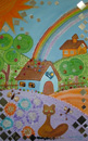 Assim, pinta paisagens bucólicas do campo, vilas tranqüilas, orixás, figuras de baianas típicas, anjos, mandalas e figuras humanas, retratando sempre um misto de sonho e realidade, dentro de um universo emocional e idealista.