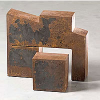 Nas esculturas sem dobras, em pequenos formatos, blocos ou pedaços de muro, volumes, recortes e vazios se combinam num jogo de deslocamentos, nem falta nem excesso. Uma articulação, não só física, mas também visual, criando intervalos lúdicos entre as partes, que faz vibrar a tensão e a elegância destas peças. Espaço e tempo, peso e espessura convivem em silêncio, dividindo harmonicamente as atenções. Malabarismos geométricos, cortes incisivos que rompem a unidade das barras de ferro oxidadas para encravar nelas os enigmas da arte.
