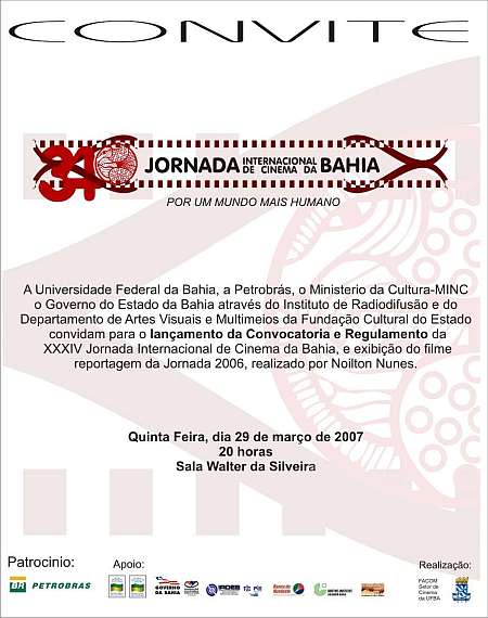 A 34ª edição da Jornada Internacional da Bahia, que tem como lema Por Um Mundo mais Humano, está programada para acontecer de 12 a 18 de setembro de 2007, no cenário acolhedor da capital baiana.