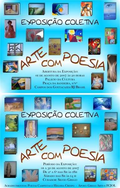 A artista plástica Telma Weber convida para a coletiva Arte com Poesia, no Palácio da Cultura em Campos dos Goytacazes - Rio de Janeiro.